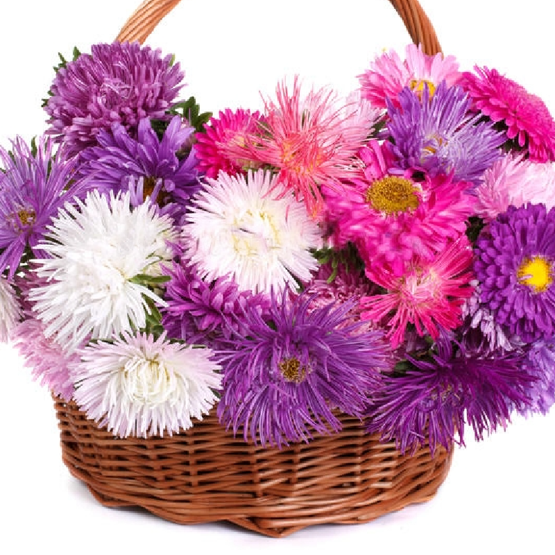 Букет состоит из MIX из 31 астры, корзина, оазис.