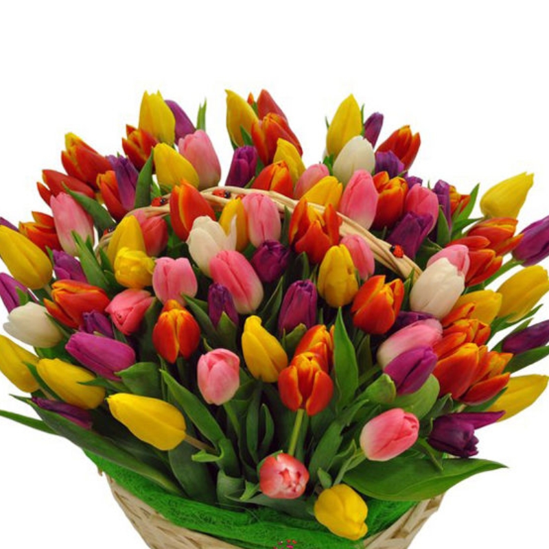 Букет состоит из MIX из 101 тюльпана, корзина.