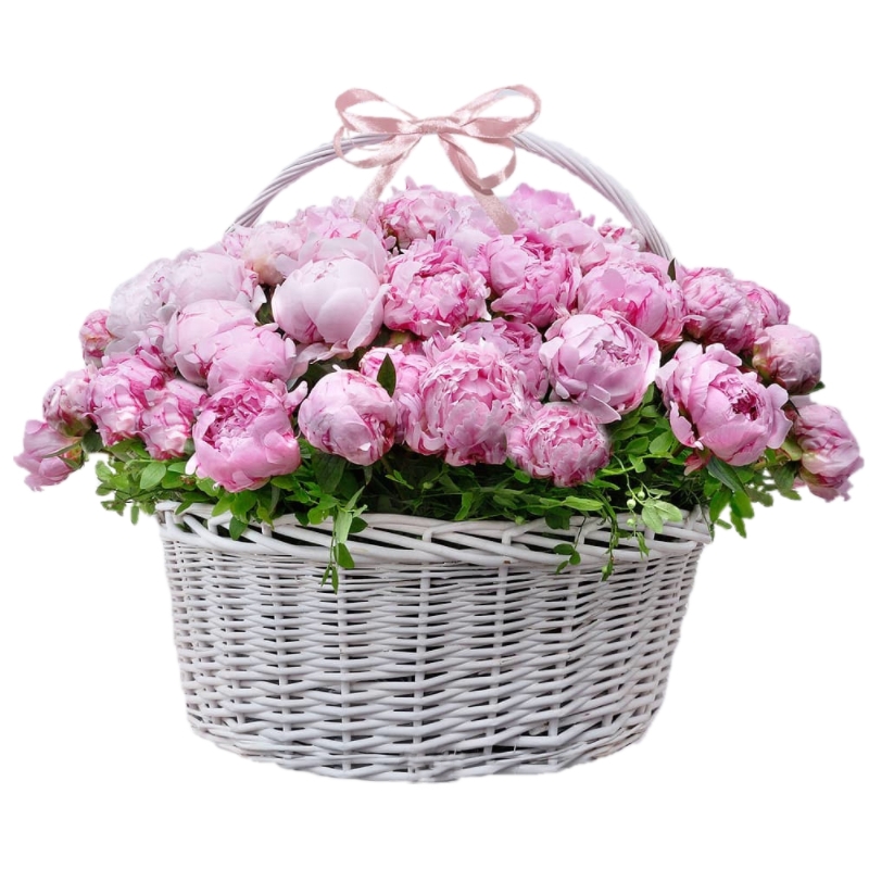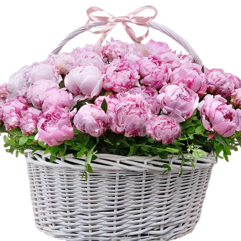 Букет состоит из 51 розовый пион, корзина.