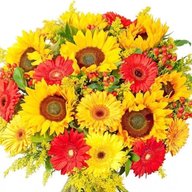 Гербера, Гиперикум, Подсолнух |