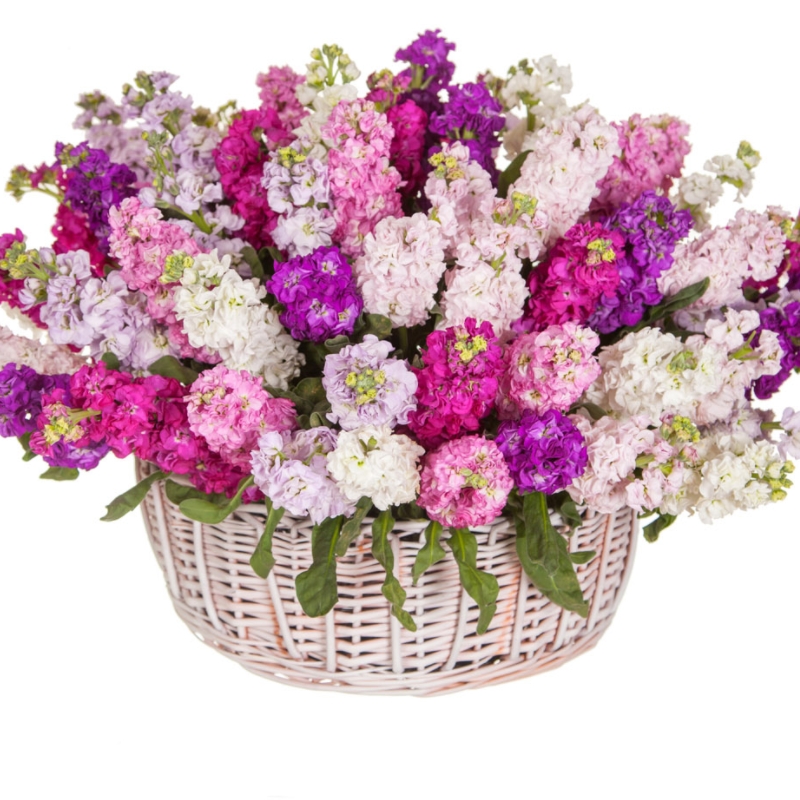 Букет из маттиол в корзине "Синди"