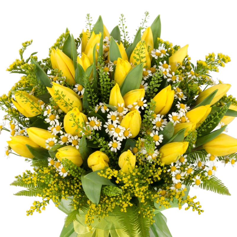 Мимоза, Танацетум, Тюльпан |