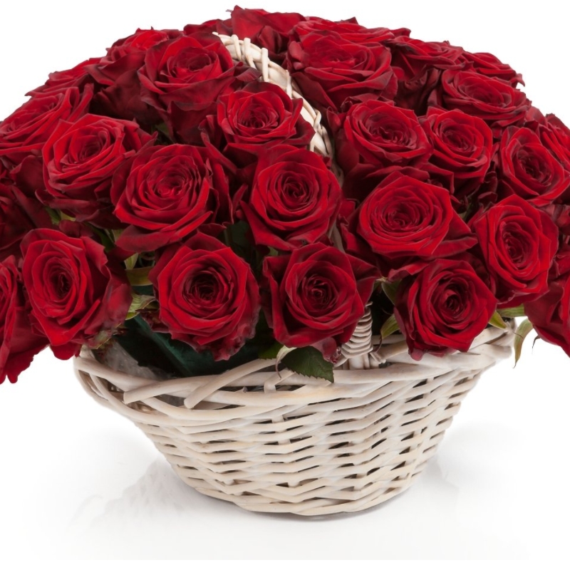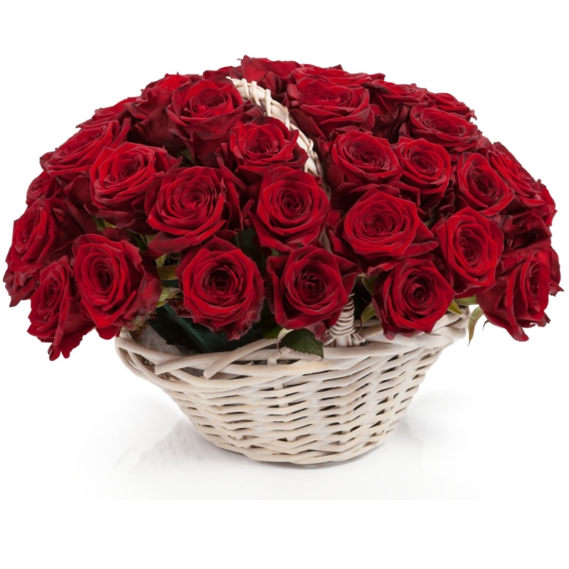 50 красных роз, корзина, оазис.
