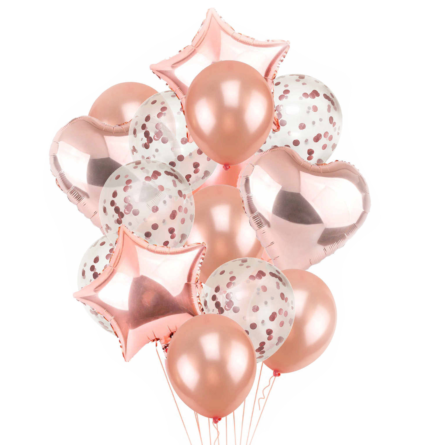 Стильный и очень солидный набор из воздушных шаров в цвете Розовое золото. В состав фонтана входят 8 латексных шаров в цвете Розовое золото, 5 прозрачных шаров с конфетти, 2 фольгированные звезды и 2 фольгированных сердца.