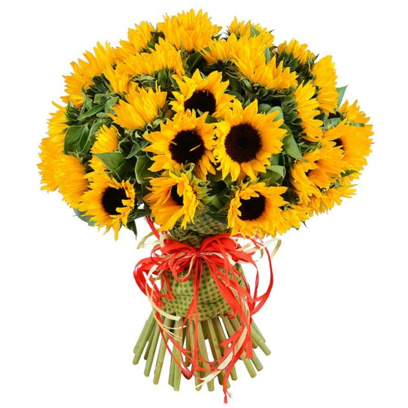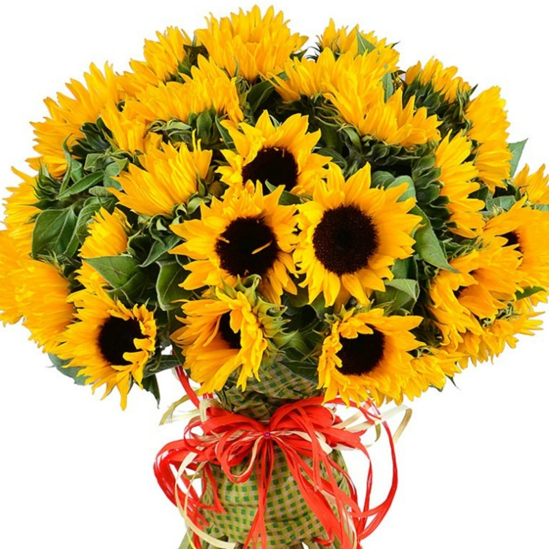 Букет состоит из 51 подсолнух, красивая упаковка, атласная лента.