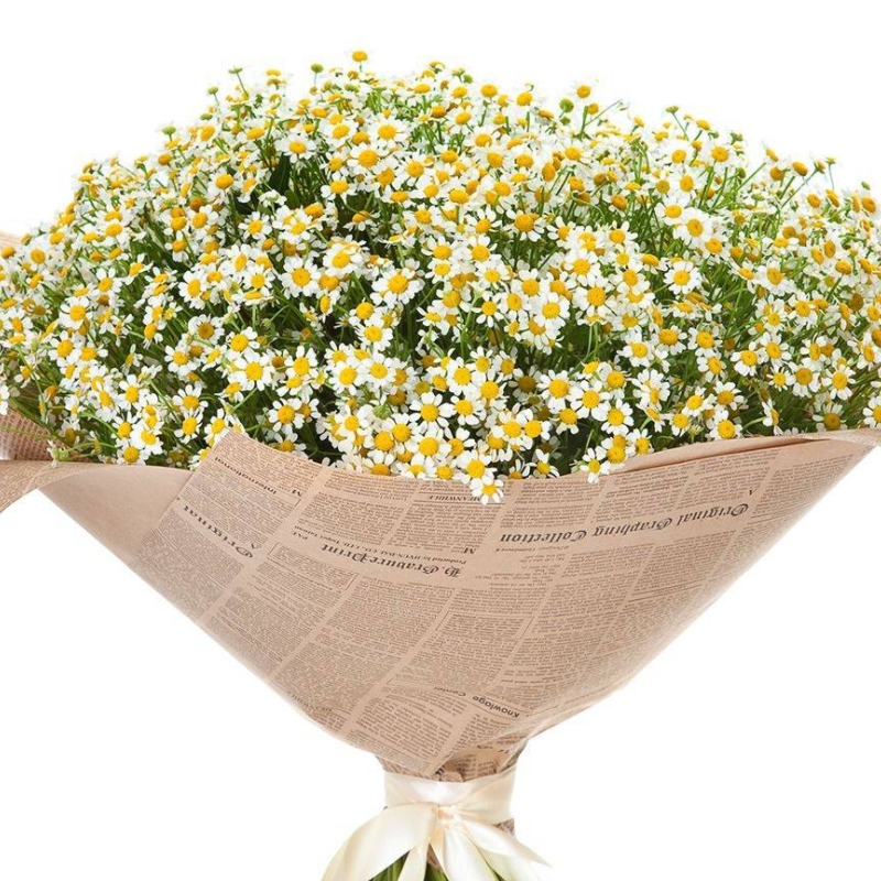 Букет состоит из 35 веток танацетума, крафт, атласная лента.