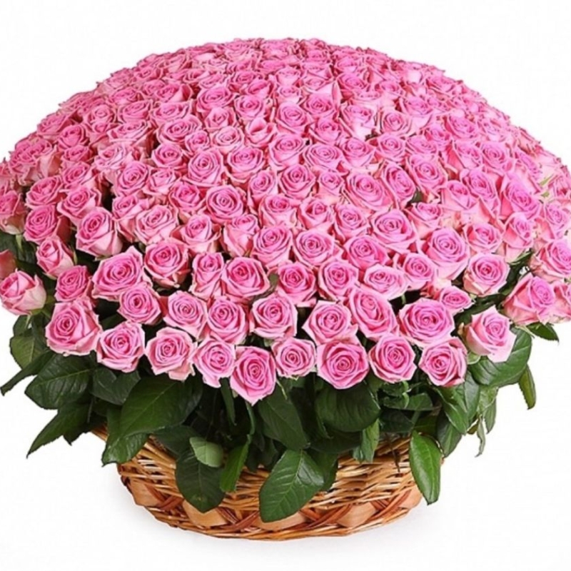 Букет состоит из 201 розовая роза, зелень, корзина, оазис.
