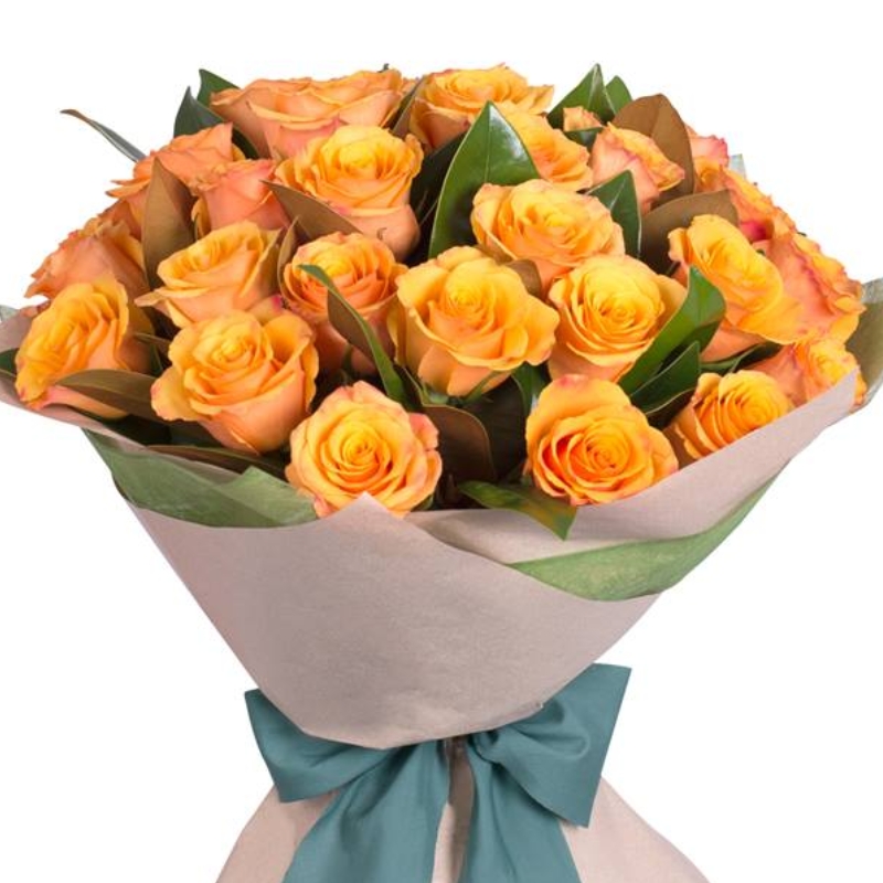 Букет состоит из 35 оранжевых роз, красивая упаковка, атласная лента.