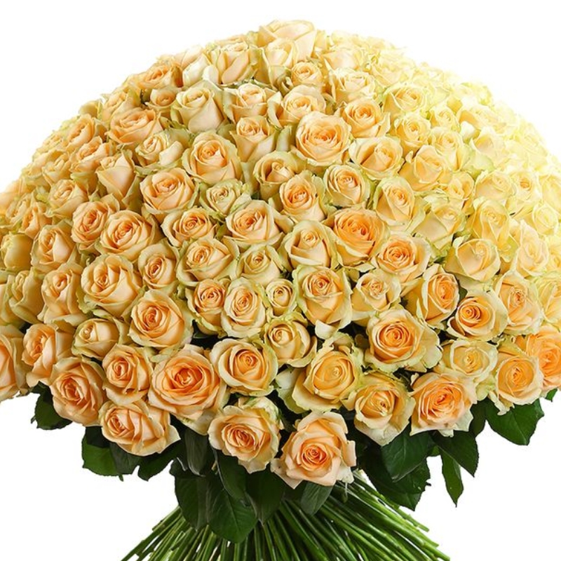 Букет состоит из 151 кремовая роза, прозрачная упаковка, атласная лента.