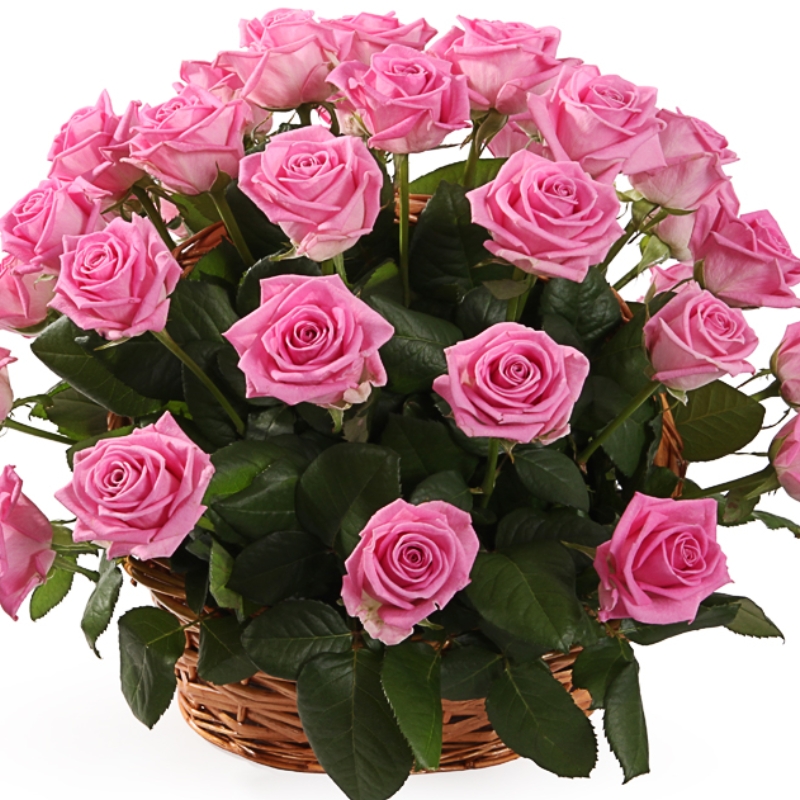 35 розовых роз, корзина.