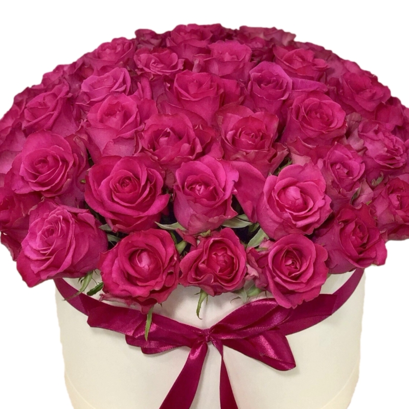 Букет состоит из 35 малиновых роз, коробка, оазис.