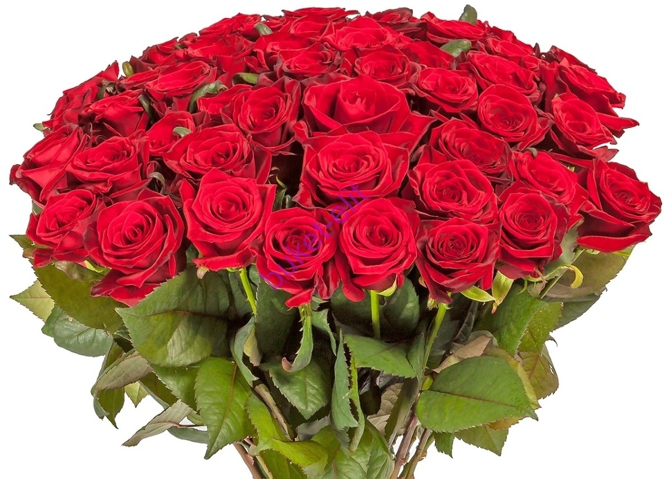 Букет состоит из 51 красная роза, прозрачная упаковка, красная лента.
