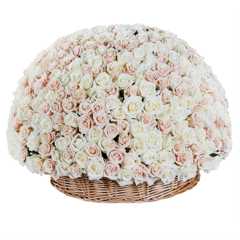Корзина MIX из 501 белой и розовой розы