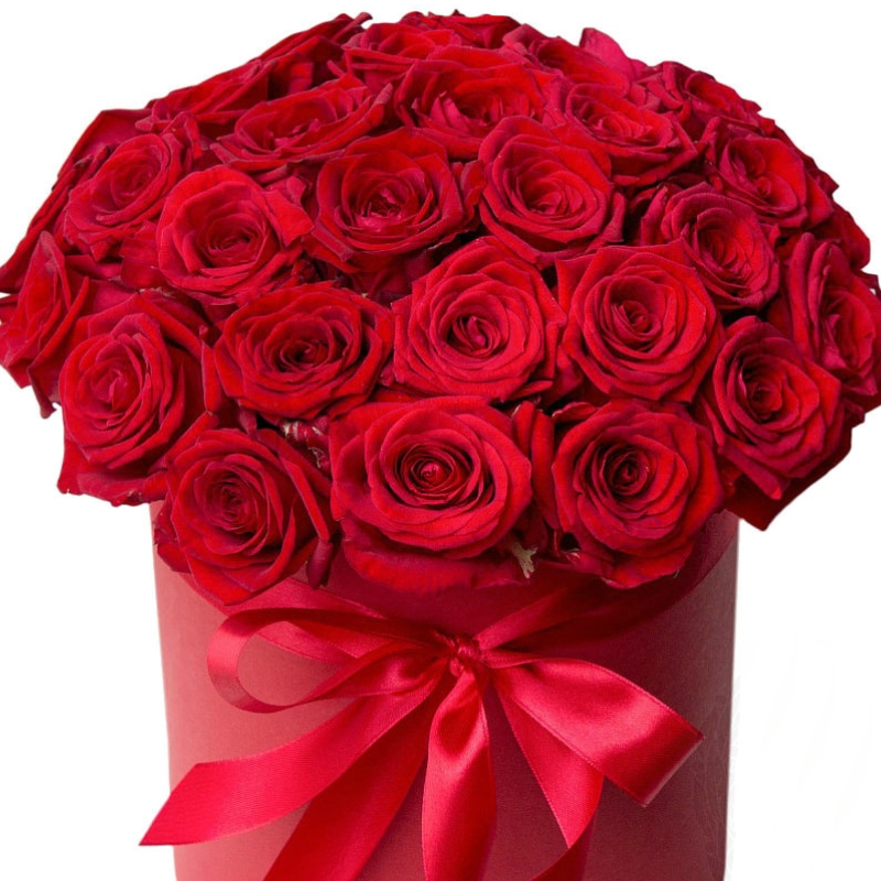 Розы в красной коробке
