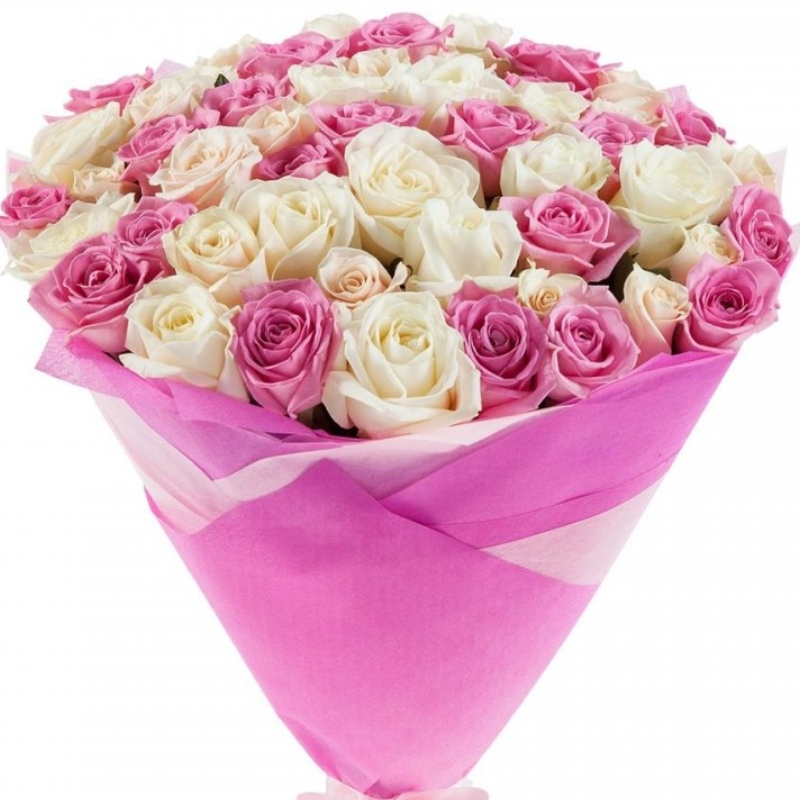 Букет из 55 розовых и белых роз