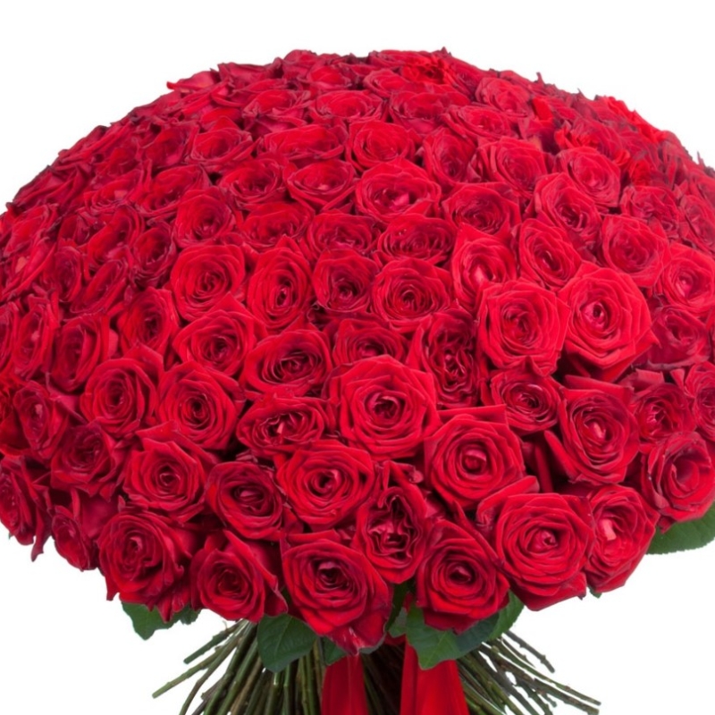 Букет состоит из 201 красная роза, прозрачная упаковка, атласная лента.