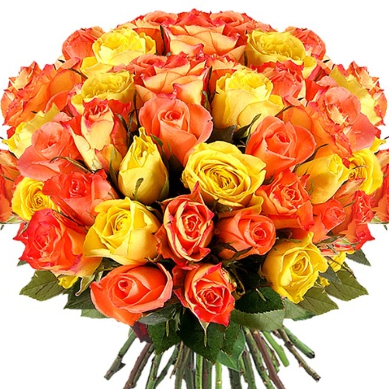 Букет из 45 оранжевых и желтых роз ( 40 см,)