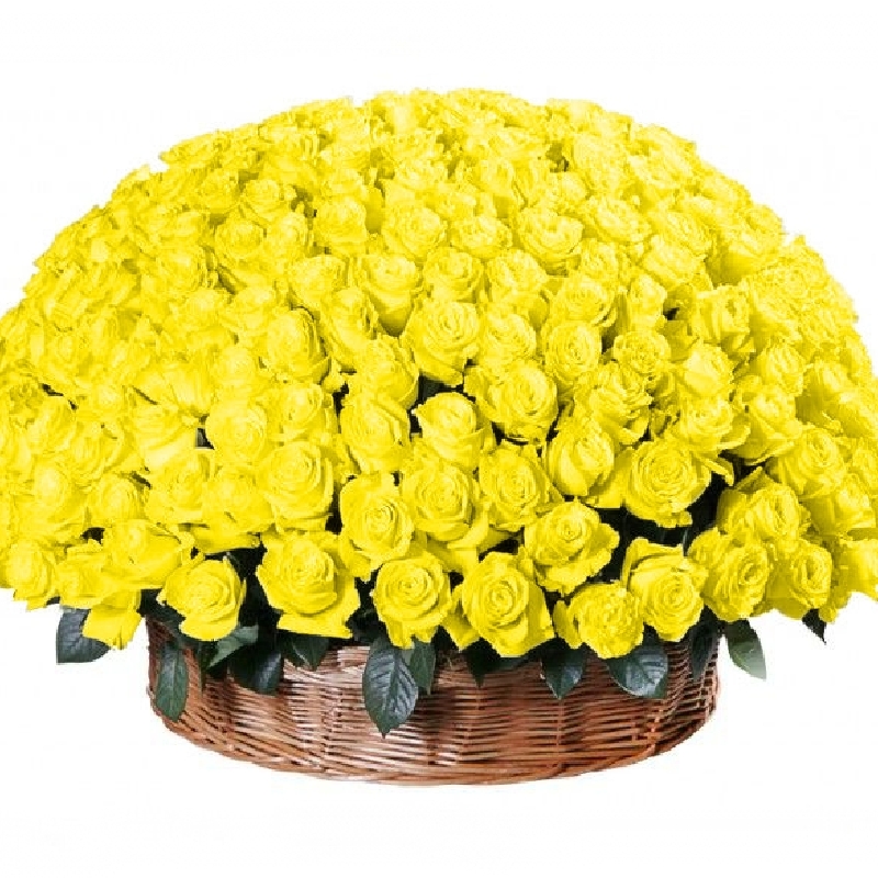 Букет состоит из 201 желтая роза, зелень, корзина, оазис.
