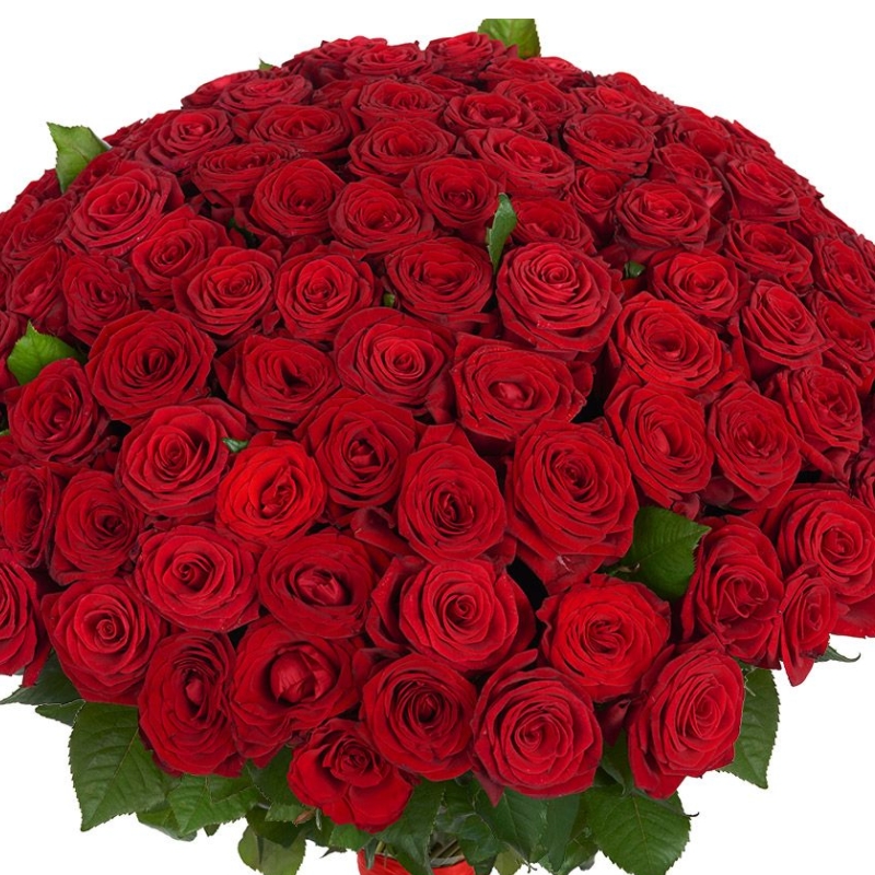 Букет состоит из 151 красная роза, прозрачная упаковка, красная лента.