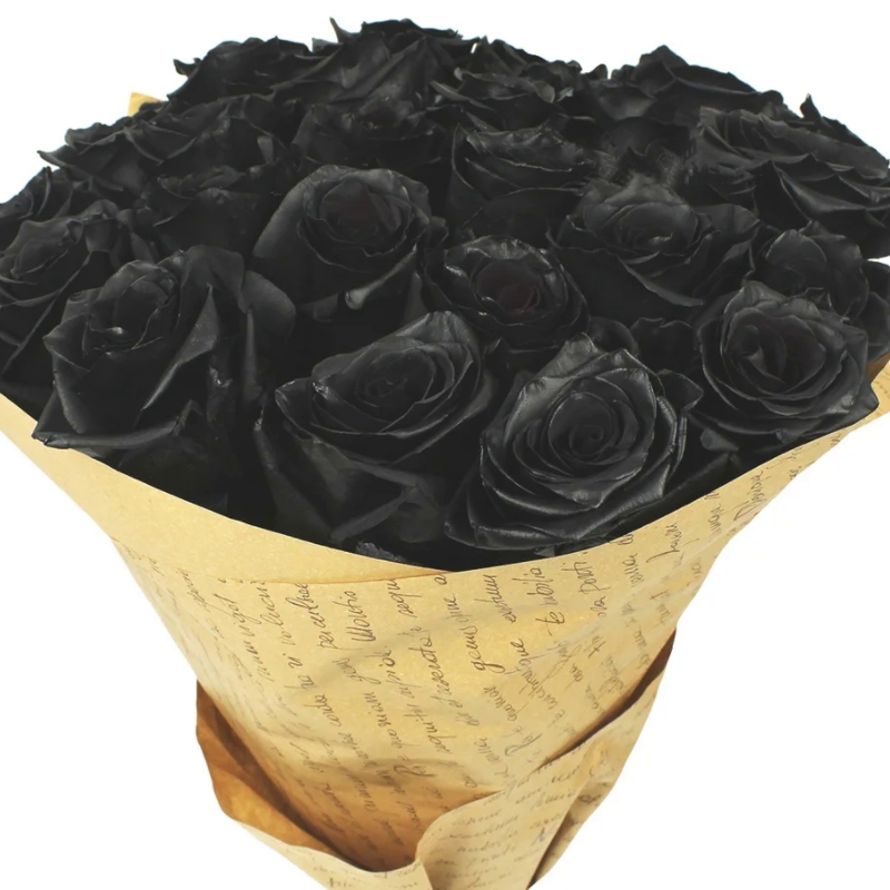 Букет состоит из 23 черные розы, крафт, атласная лента.