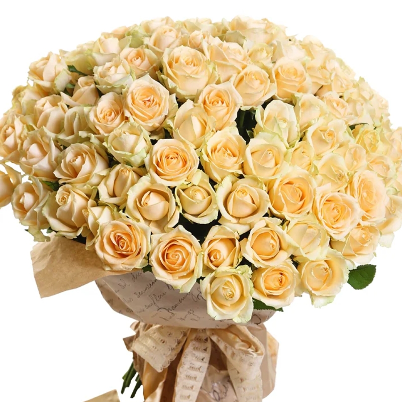 Букет из 101 кремовой розы в крафте