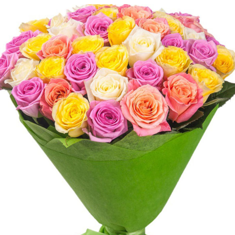 Букет состоит из MIX из 45 роз, красивая упаковка, атласная лента.