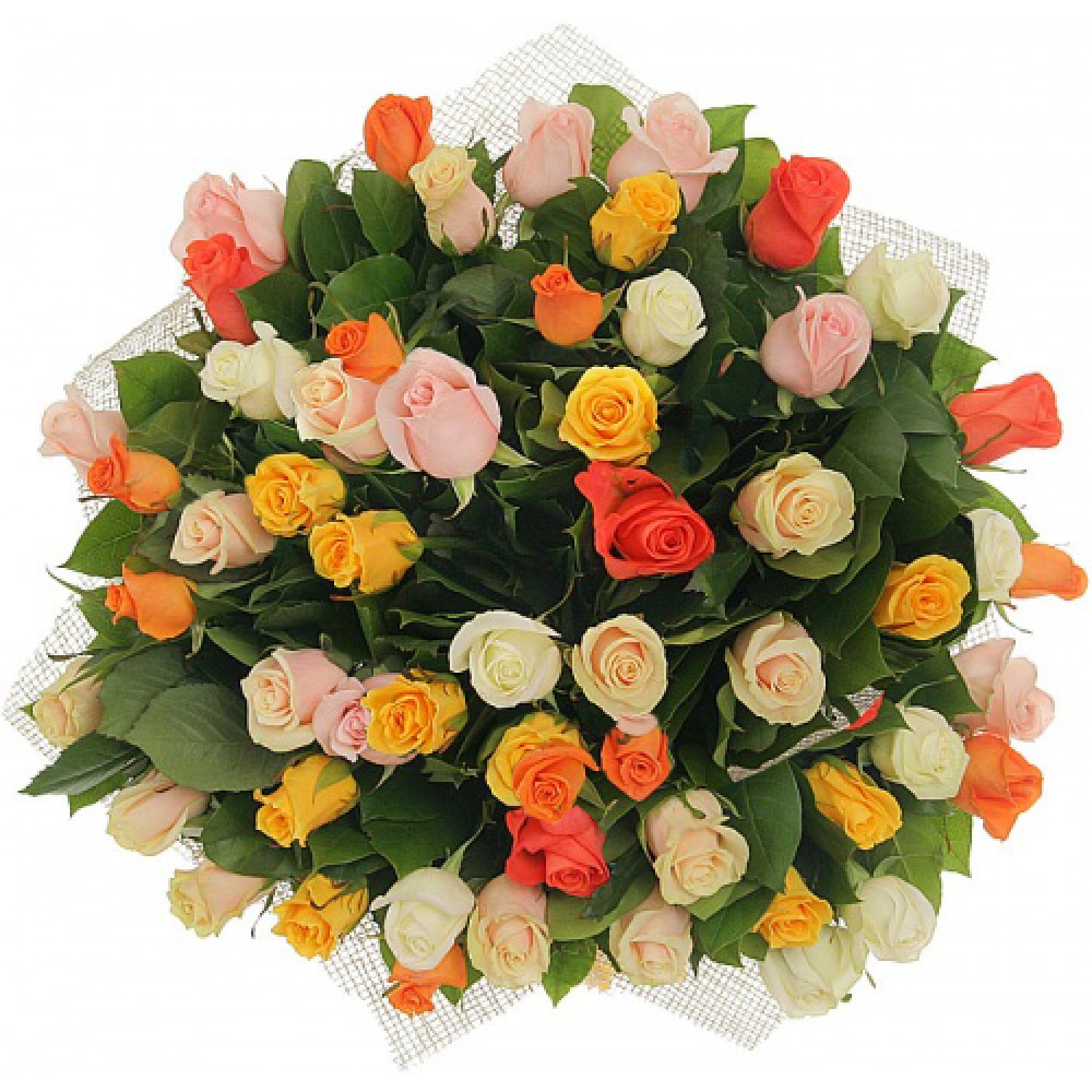 Букет состоит из MIX из 51 розы, сетка, атласная лента.