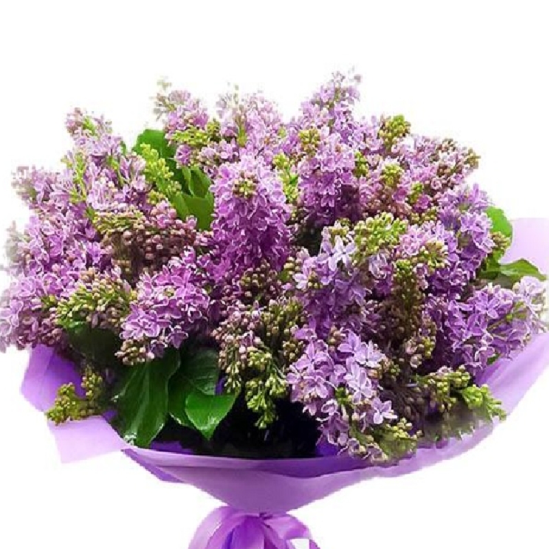 Букет состоит из 19 веток сирени, красивая упаковка, атласная лента.